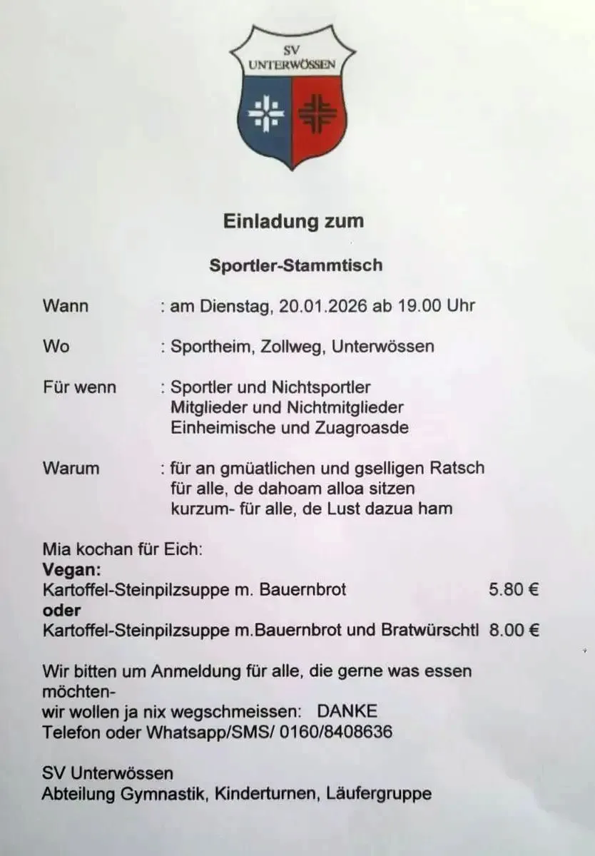 Voraussetzung: Mitgliedschaft im Sportverein Unterwössen,
