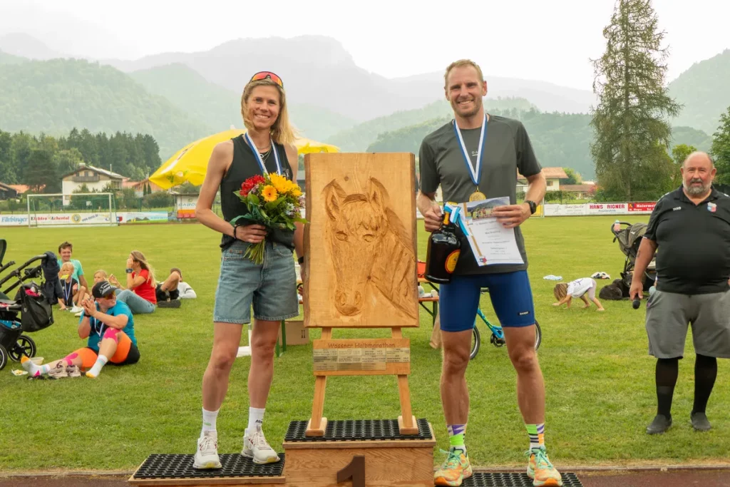 Unterwössen – Im 12. Wössner Halbmarathon gewann der Münchner Max Krautwig in 1:14:38 Stunden. Schnellste Frau war Amelie Schmalfuß vom TSV Marquartstein in 1:23:56 Stunden. Nur einer bei den Männern, nur eine bei den Frauen waren in der 12-jährigen Geschichte des Wettbewerbs schneller als die beiden. Der veranstaltende SV Unterwössen freute sich über den gelungenen Tag mit 278 Teilnehmern über die Wettbewerbe hinweg, so viele wie noch nie in der Geschichte dieser Veranstaltungsreihe.