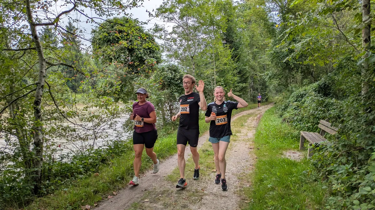 Wie sie sich hineingehängt hatte, das zeigten die Spuren der Erschöpfung der Amelie Schmalfuß vom TSV Marquartstein mit ihren großartigen 1:23:56 Stunden. Die Leistung lohnte sich. Mit Platz 7 der Gesamtwertung sprengt sie die Top-Ten Domäne der Männer. 2019 hatte sie schon einmal den Halbmarathon in der Frauenwertung gewonnen, damals mit 1:38:31 Stunden. 6 Jahre älter, aber 10 Minuten schneller. Chapeau. Hinter ihr folgte Anja Kobs vom TSV Alling in 1:25:03, Dritte wurde Bayly Mattes in 1:34:56.