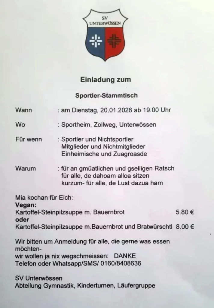 Voraussetzung: Mitgliedschaft im Sportverein Unterwössen,